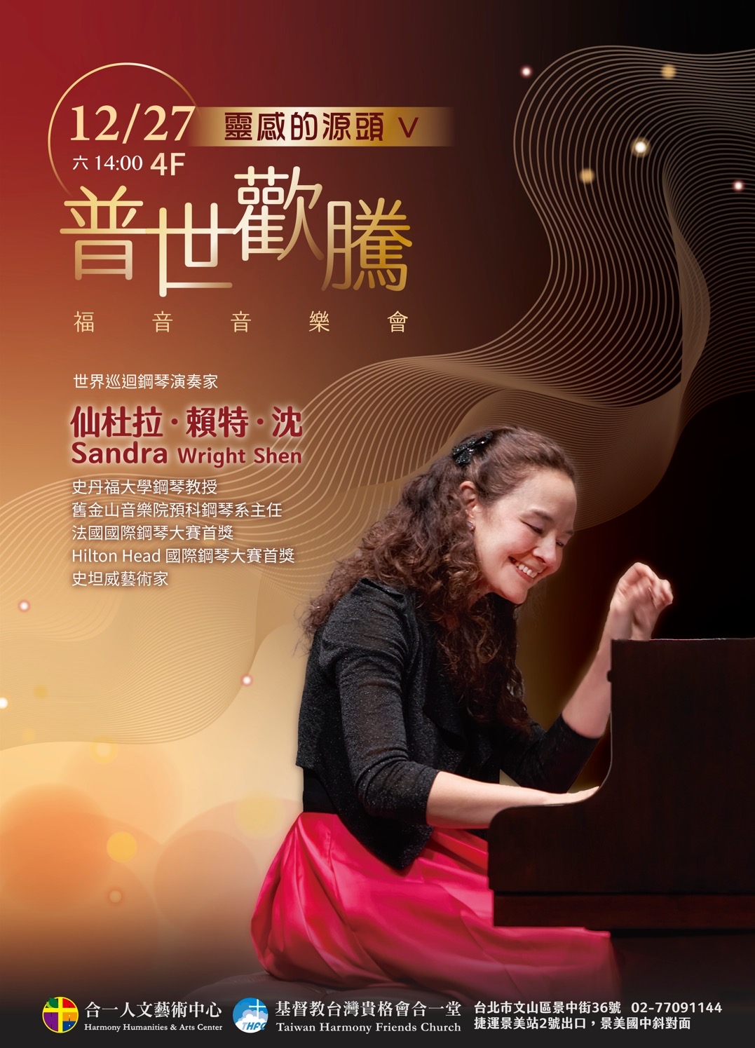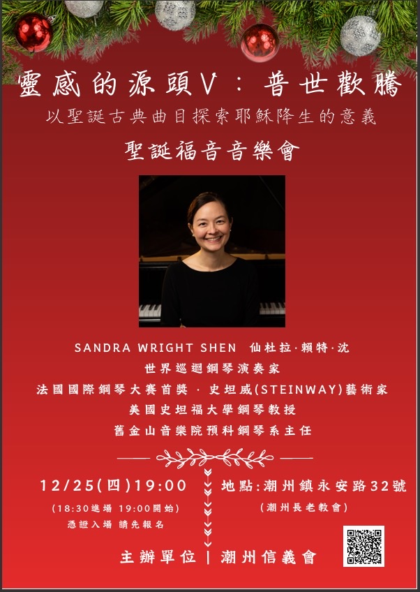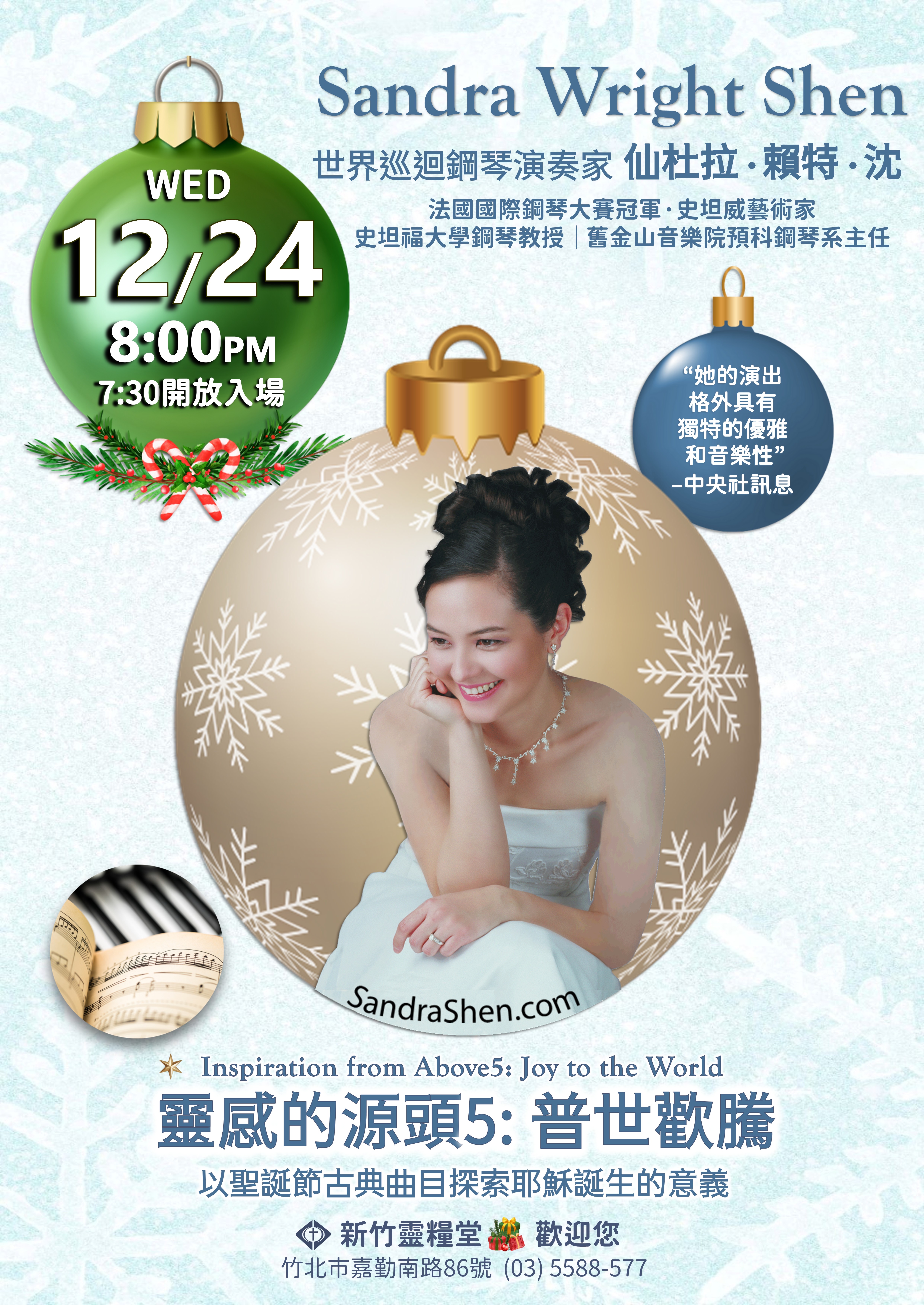 Sandra performed live for WCQS radio station in Asheville, filmed a 4-part series titled “The Movements of the Master composers” for Hong Kong TV, and “Inspiration From Above” featuring spiritual lives of the composers for US Creation TV. She also hosted a classical music program on Taiwan IC broadcast radio station. Mixing music and philanthropy, Sandra has played benefit concerts for disaster victims, foster children, firefighters, and music education for underprivileged children.